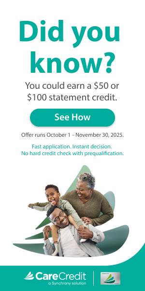 *Subject to credit approval. Minimum monthly payments required. Visit www.carecredit.com for details.